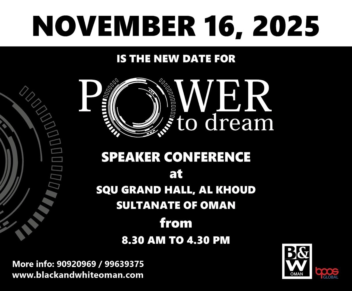 "قوة الحلم" مؤتمرٌ مُلهمٌ للقيادة الفكرية، يضم أربعةً من قادة الفكر العالميين وثمانية متحدثين عُمانيين بارزين، ويهدف إلى تمكين شباب عُمان وتحفيزهم من خلال قصص الطموح والمثابرة والعزيمة والنجاح الباهر.
