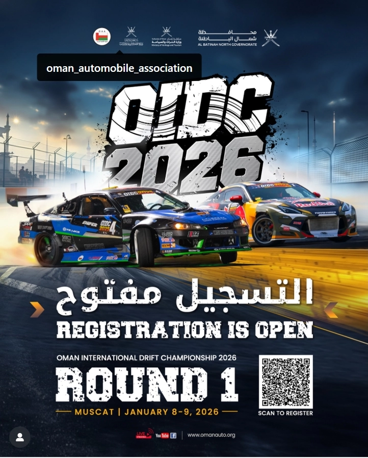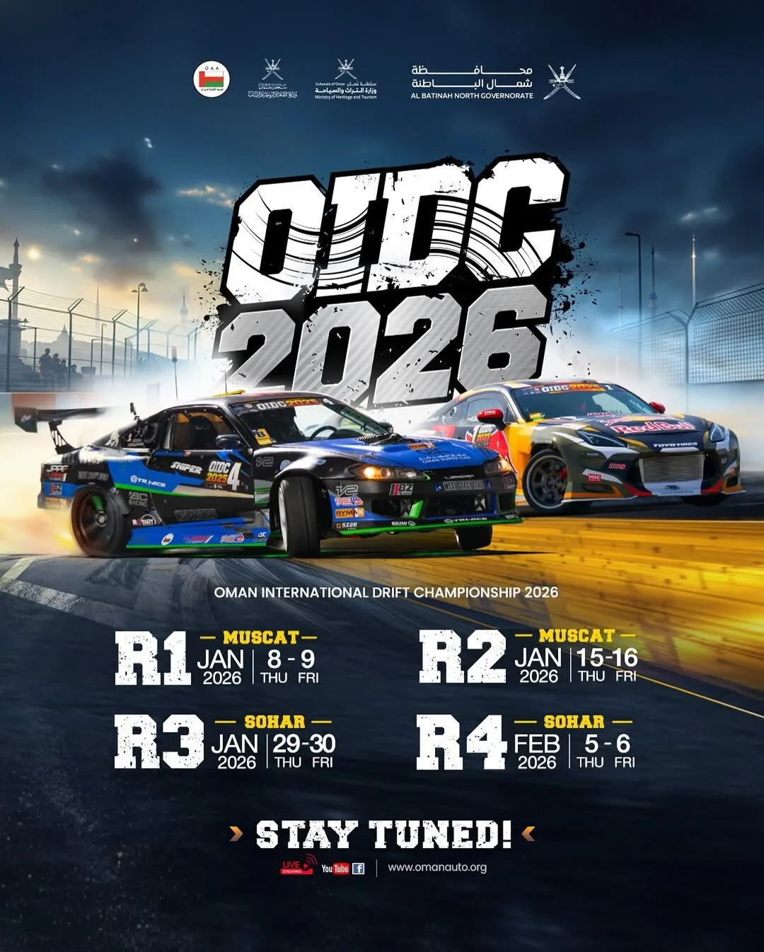 تعود بطولة عُمان الدولية للانجراف (OIDC 2026) من جديد. ستتضمن البطولة أربع جولات، اثنتان في مسقط واثنتان في صحار.